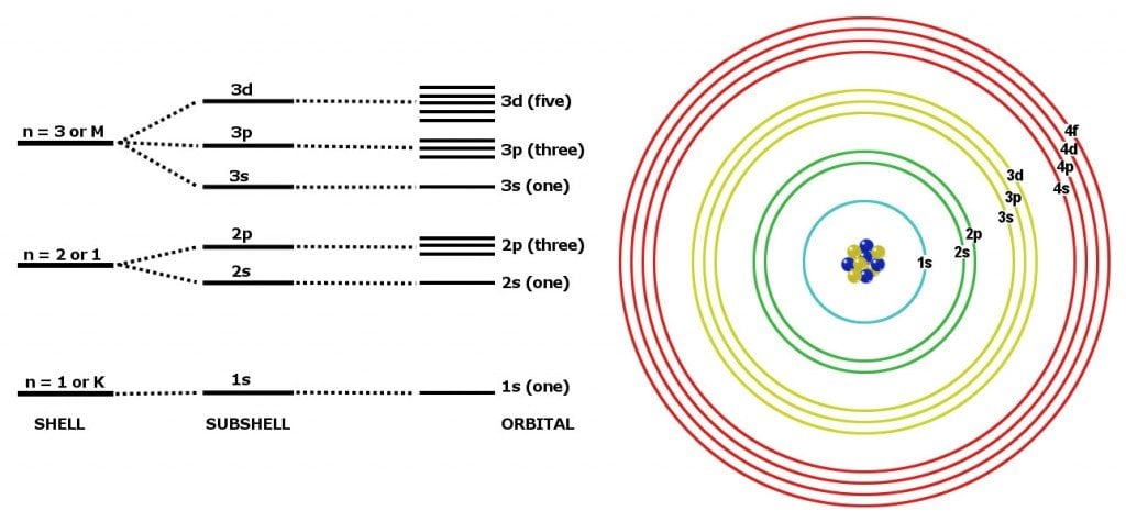 Now, the next sentence might sound hypocritical, but quantum numbers can be thought of as our good ol’ shells, but with sub-shells now, which are technically known as orbitals (s,p,d,f). Regardless of this oversimplification, it fares quite well for a crash course such as this one.